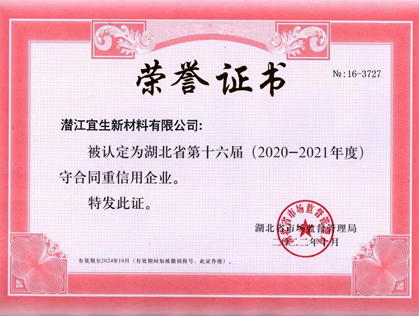 宜生新材料-榮譽資質(zhì)